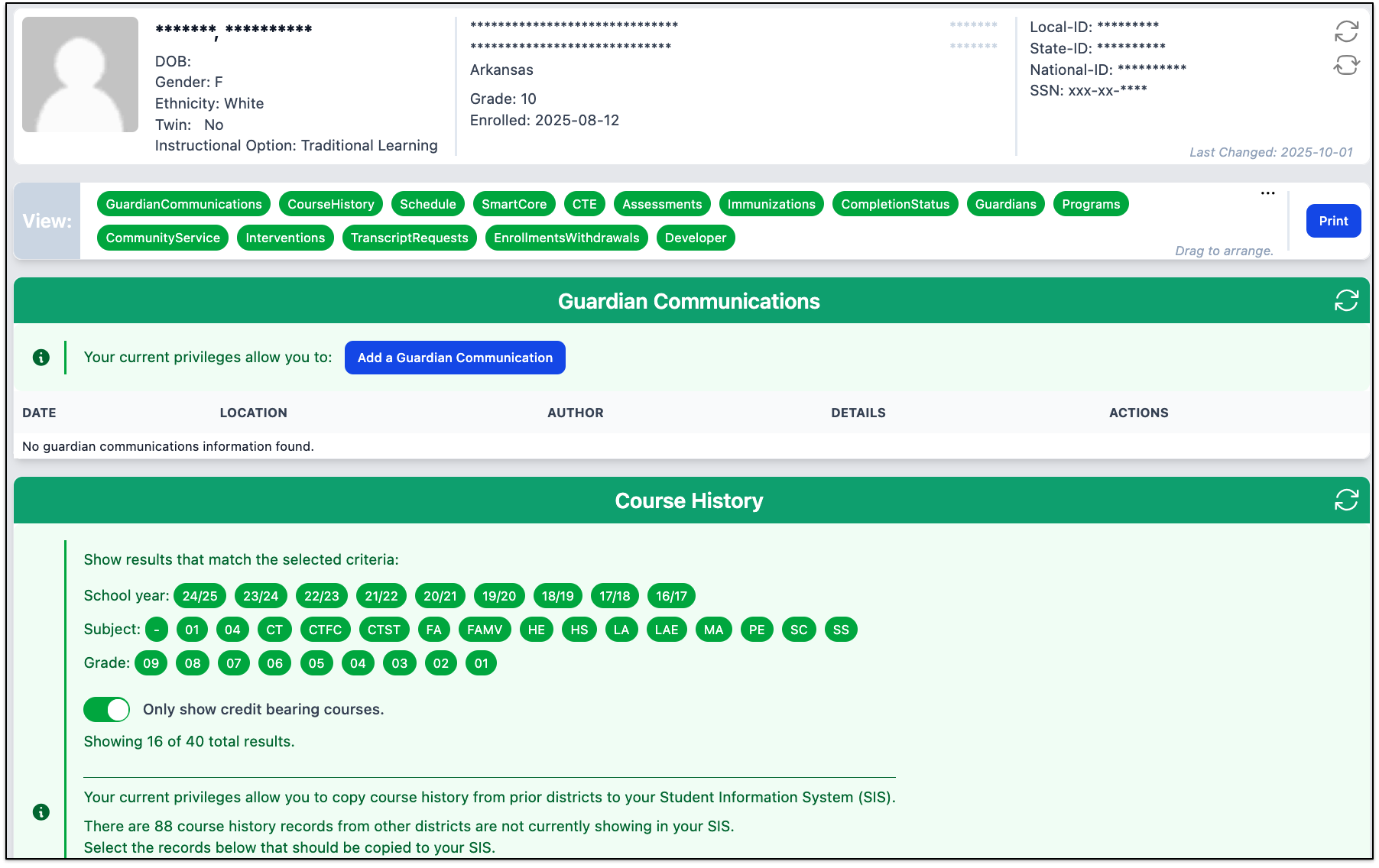 Triand allows counselors and registrars to copy past course history on a student transcript from a previous district into eSchoolPLUS at the new/current district.