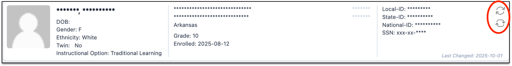 Once you have enrolled the student in eSchoolPLUS, click the “Refresh” button in the Student Information section to update the student’s location, local ID, DOB, and the name of the student in Triand without having to wait until the