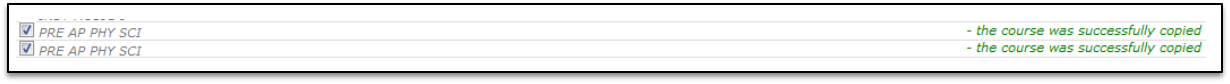 If you choose to copy, you will receive a message on the transcript that the course was successfully copied: